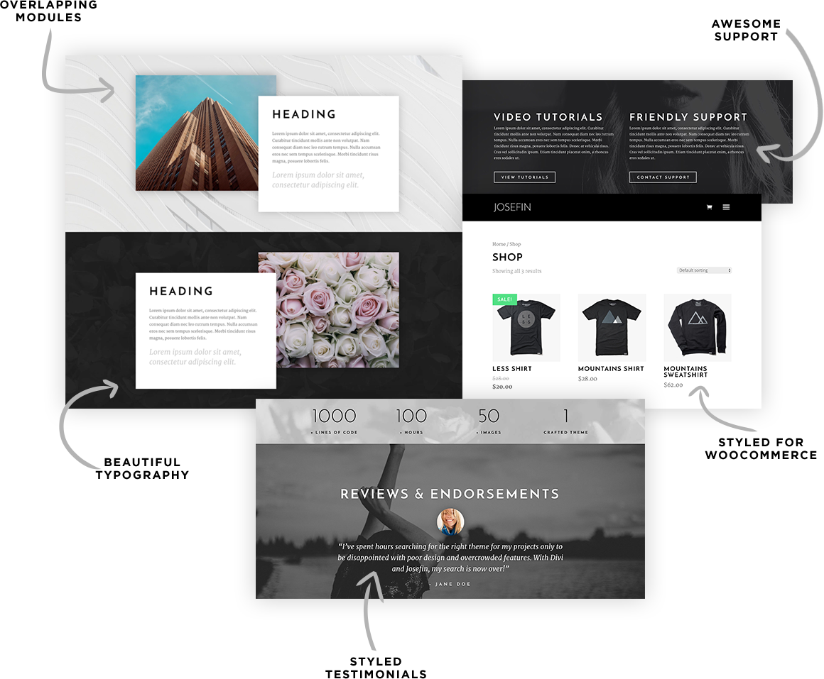 Finally, a clean & modern Divi Child Theme using great typography and imagery. Josefin is class all the way.